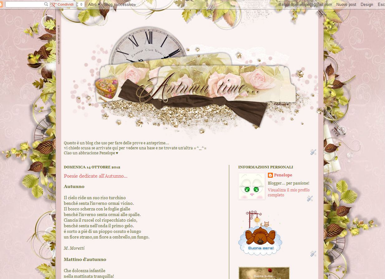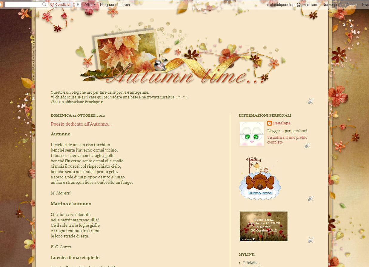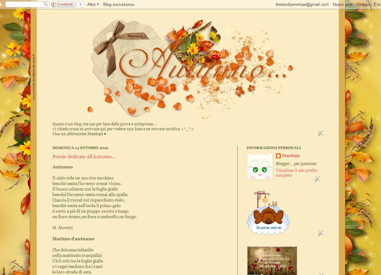 ೡ Blogger Kit "Autunno"Adoro l'Autunno anche ora che le stagioni fanno i capricci^^e si passa direttamente all'inverno capperina, meno male la grafica che ci permette di realizzare piccole magie per cui almeno nei nostri spazi l'autunno avrà i suoi colori caldi e dorati - Cliccate sulle piccole anteprime per vedere uno stamp a grandezza originale Per il primo c'è anche un'anteprima live ^_^